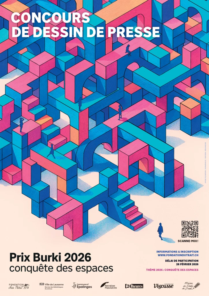 Créé en 2021, le Prix Burki a pour objectif de valoriser la relève dans le dessin de presse. Jusqu’ici ouvert aux 15-35 ans, il s’élargit pour sa cinquième édition, avec une nouvelle catégorie dédiée aux 5-15 ans. Ce choix découle directement du succès des ateliers de médiation culturelle proposés dans les écoles, qui ont réuni de nombreux élèves motivés et curieux de découvrir la satire graphique comme langage citoyen.