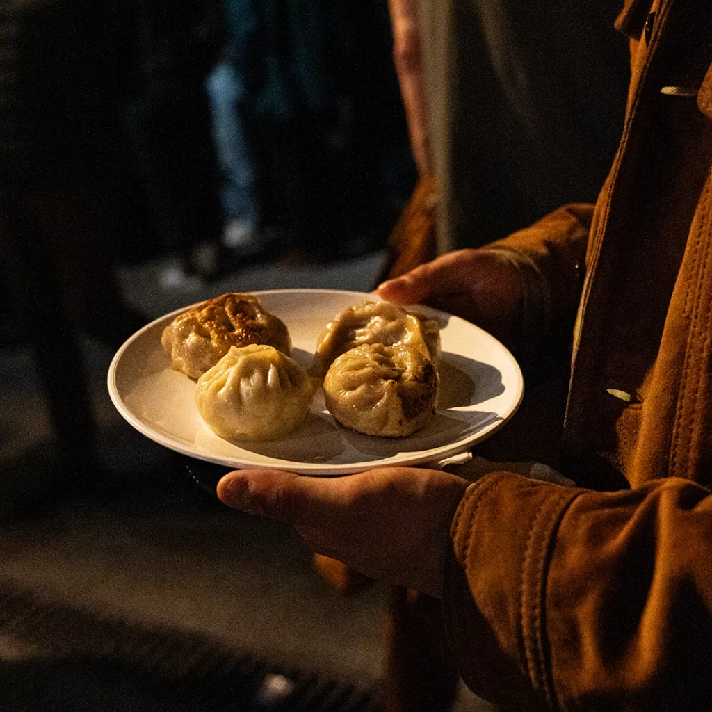 Entre deux concerts, place aux plaisirs gourmands : des momos asiatiques savoureux, puis un Swiss Burger bien exécuté du Food Bus.